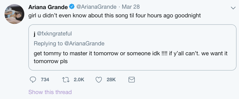 Gonzales, E. (2018, March 15). Rihanna Savagely Responds to Snapchat’s Tone-Deaf Ad About Her and Chris Brown. Retrieved from Harpers Bazaar: https://www.harpersbazaar.com/celebrity/latest/a19445760/rihanna-response-snapchat-chris-brown-ad/